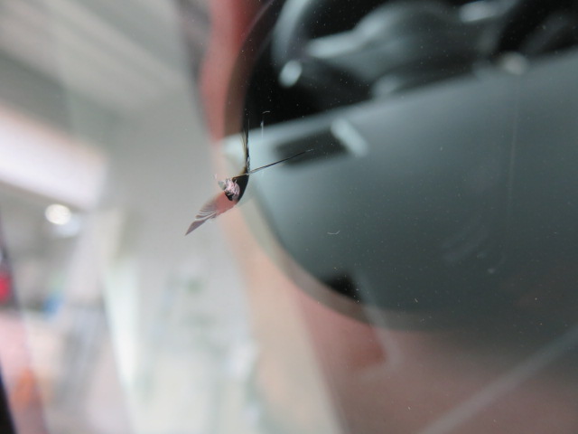 MINI金沢さんでガラス修理 石川県野々市市 今日は石川県野々市市にあるMINI金沢さんにガラス修理に行って来ました。 一年位前にこのキズの10cm右横にガラス修理した跡があり、以前と変わらず良い状態でした。