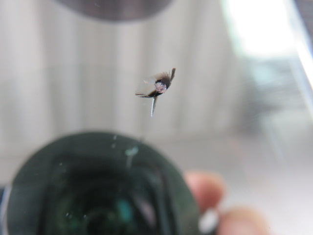 2か月ほど前に飛び石キズになったようで、場所はデフロスターの真上にありました。