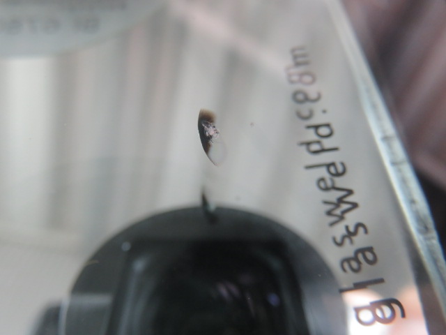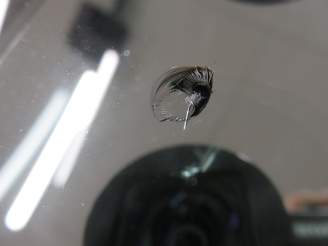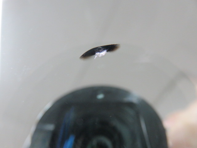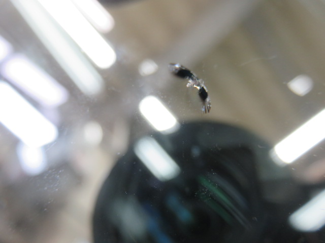 10/23 10:00頃飛び石キズ、3時間30分後に修理 今日は石川県かほく市から一般のお客様が来店されました。本日10時頃8号線を小矢部方向に走行中に石が直撃し、近くの駐車場よりお電話を頂き、13時30分に当店に来られました。 全体では2cmより少し大きかったですが、キッチリと修理させて頂きました。ありがとうございました。