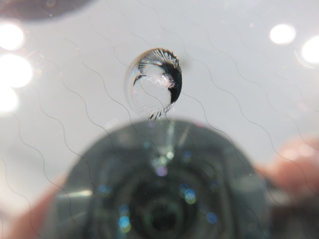 雨の日のフロントガラス修理 今日は金沢市内にあるダイハツさんにガラス修理に行って来ました。 11時に待ち合わせで、ぴったりにお客様がいらっしゃって、すぐ修理に取り掛かりました。 上の画像は修理前の水分がたっぷりな状態 そして下の画像は水分除去したものです。 この作業は私は当たり前のことですが、出来ない業者もいるのでご注意を!