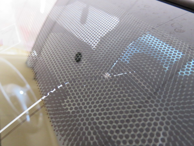 今日は金沢市内にある自動車中古車販売店様よりガラス交換の車をお預かりしました。ガラス上方の中央部(センターバイザー)に石が当たり交換になりました。ここにキズができると分かりにくいので、気づいたときには20cmくらいになってしまいます。何処に当たるかわかりませんが、気づいたときには早めに修理しましょう。